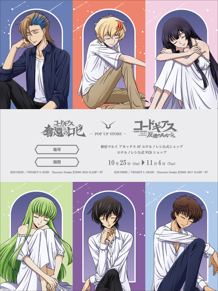 『コードギアス 奪還のロゼ』『コードギアス 反逆のルルーシュ』POP UP STOREが開催決定!