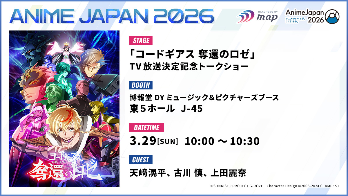 AnimeJapan 2026にて『コードギアス 奪還のロゼ』TV放送決定記念トークショー開催決定!
