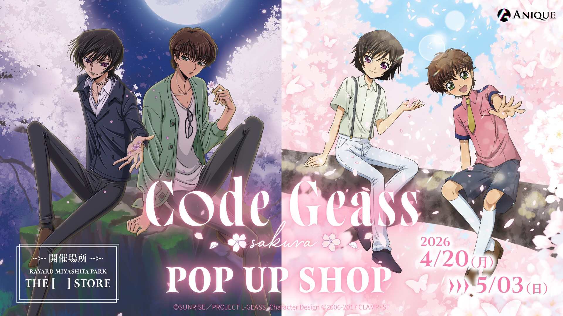 「コードギアス 反逆のルルーシュ」20周年記念【さくら】をテーマにした新規描き下ろしグッズの渋谷POP UP SHOP開催決定!