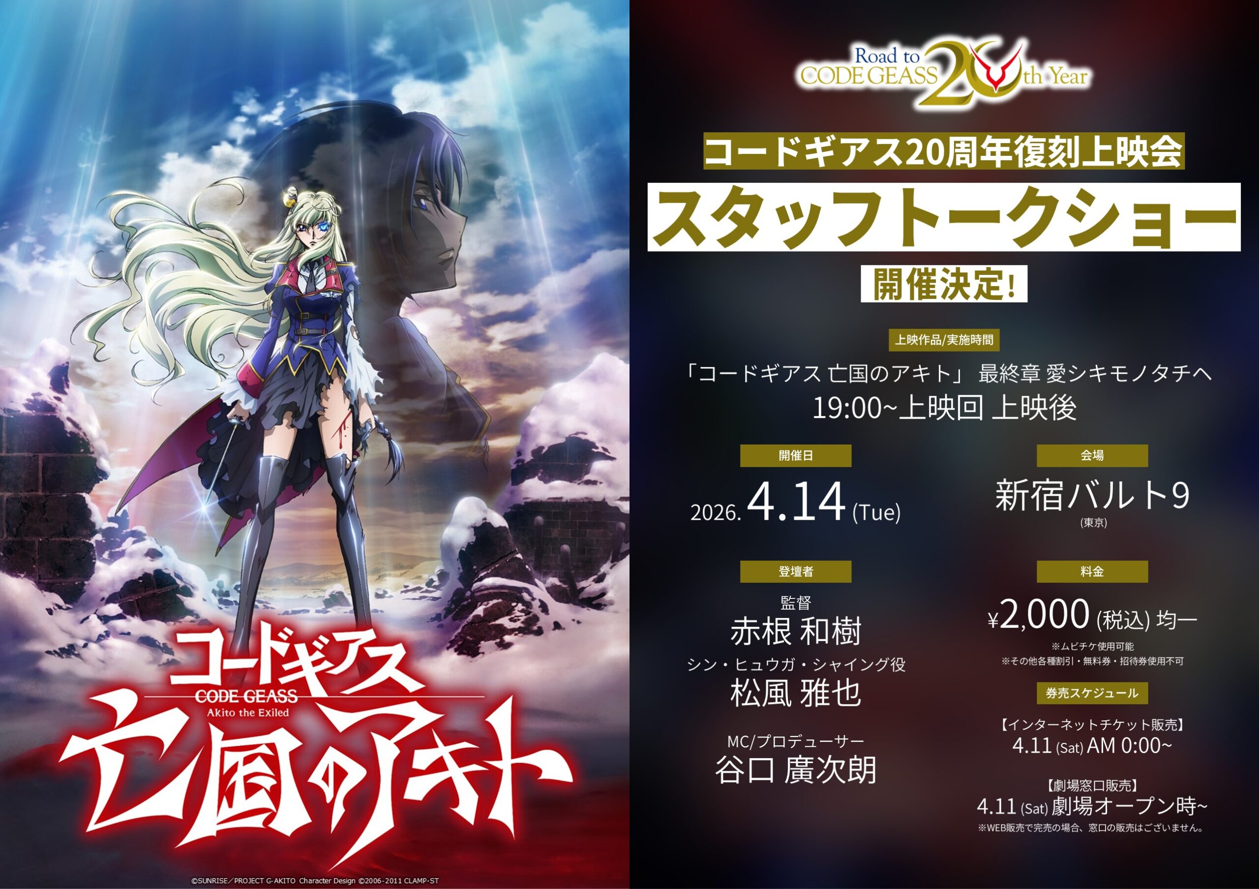 「コードギアス20周年復刻上映会」スタッフトークショー開催決定!