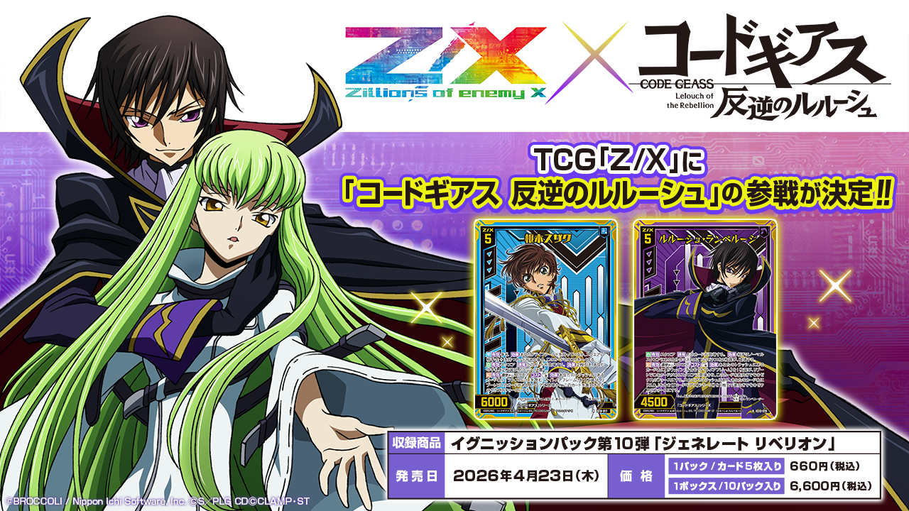 TCG「Z/X –Zillions of enemy X-」と「コードギアス 反逆のルルーシュ」のコラボが決定!!