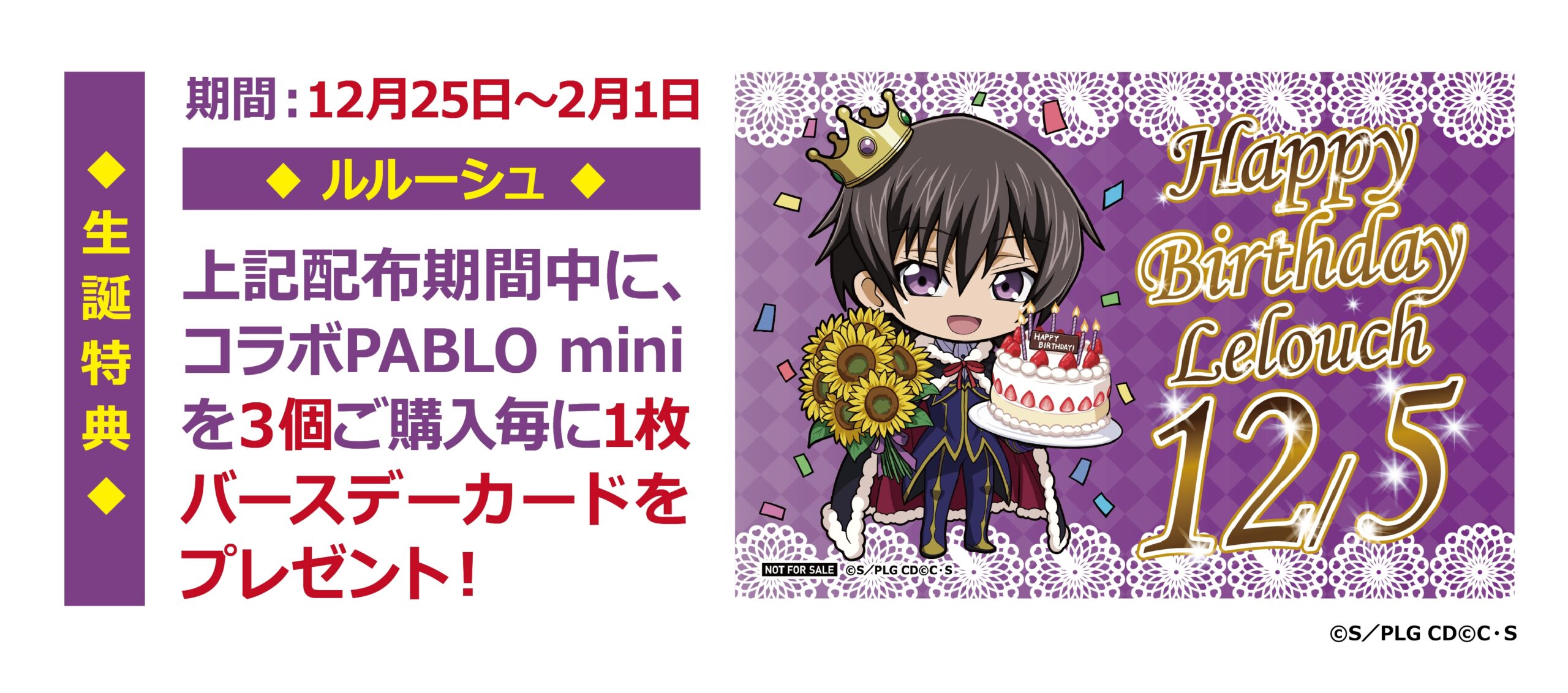 『PABLO mini』×『コードギアス 反逆のルルーシュ』 第2弾コラボが12月25日より開催!