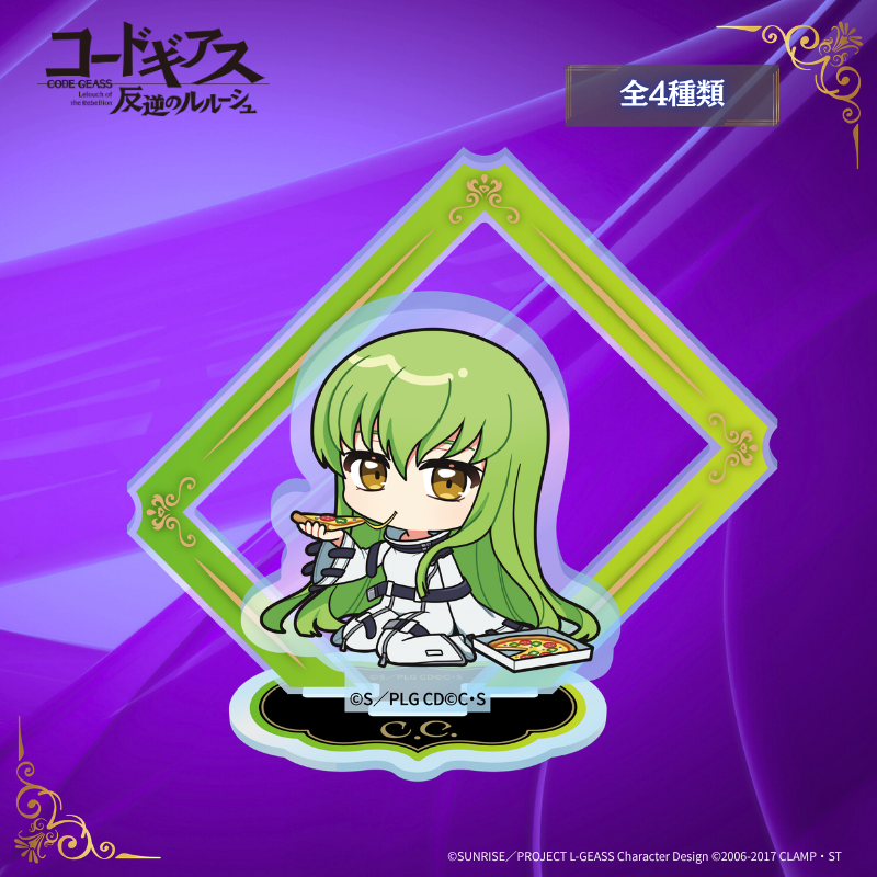オリジナル描き起こしイラストを採用し、「ルルーシュ」「スザク」「C.C.」「カレン」の全4種類!
