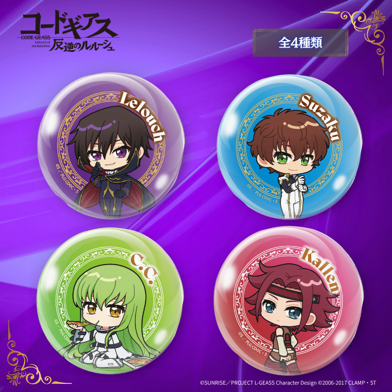 オリジナル描き起こしイラストのルルーシュ、スザク、C.C.、カレンの全4種やコードギアス Genesic Re;CODEのキャラクター絵を採用したグッズを販売!